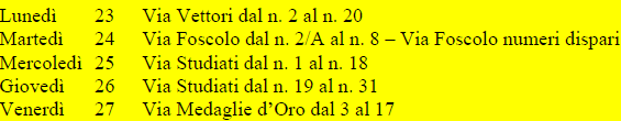 Lunedì 16 Via Morandi dal n. 39 al n. 53