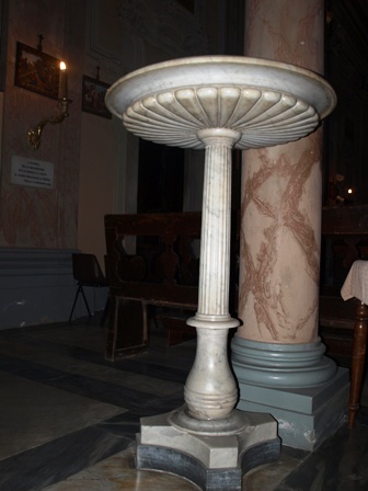 All'inizio, entro un vano seicentesco è posto il fonte battesimale